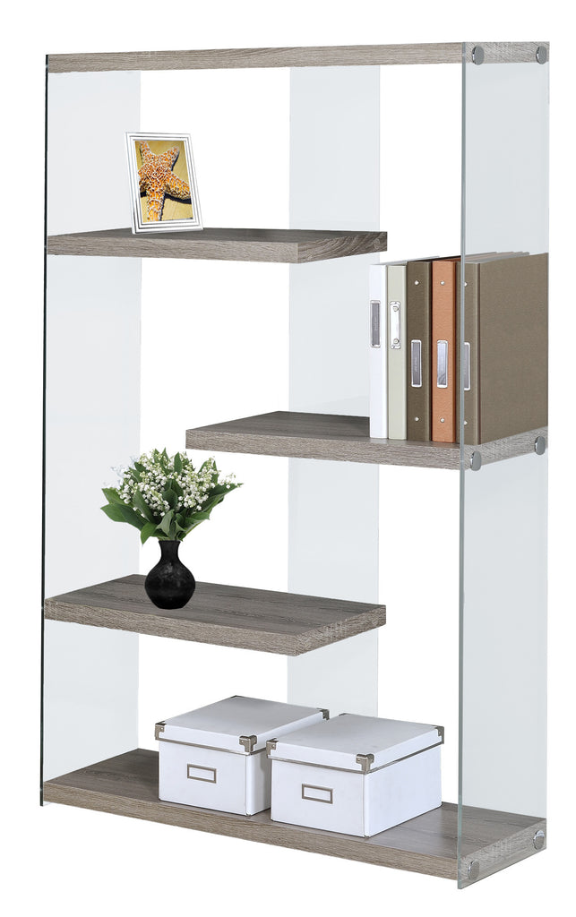 L&S Basics 10490 Bookcase - 60"H / Dark Taupe With Tempered Glass