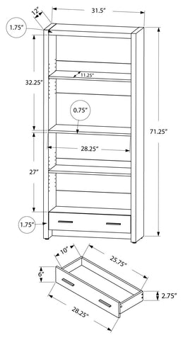 L&S Basics 10815 Bookcase - 71"H / Natural With A Storage Drawer