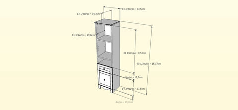 - 1 drawer on metal slides and 1 closed cubby with reversible door opening from left or right
