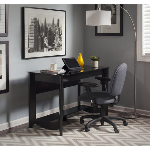 - Desk features gray-tinted glass work surface
