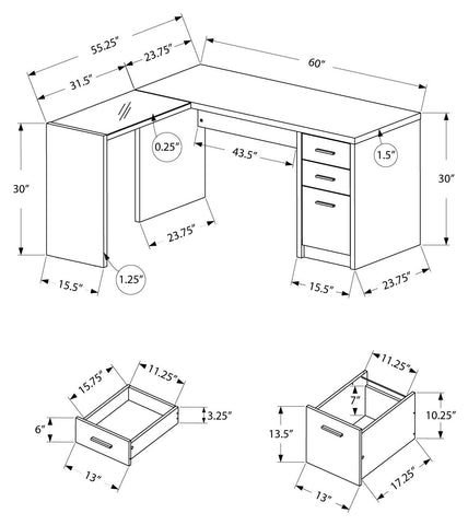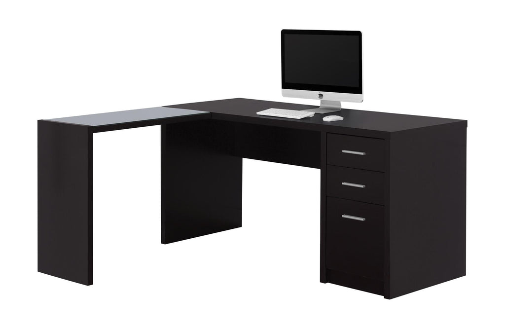 L&S Basics 10844 Computer Desk - Cappuccino Corner With Tempered Glass