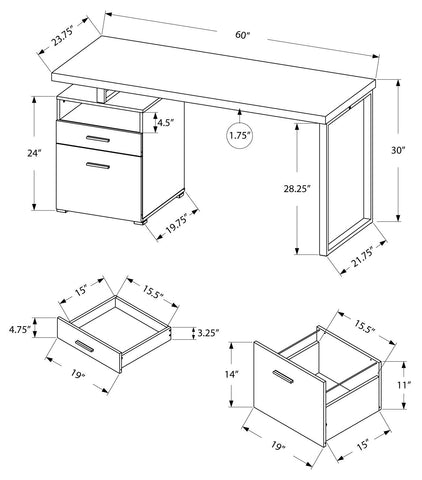 L&S Basics 10848 Computer Desk - 60"L / White / Silver Metal