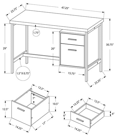L&S Basics 10852 Computer Desk - 48"L / White / Silver Metal