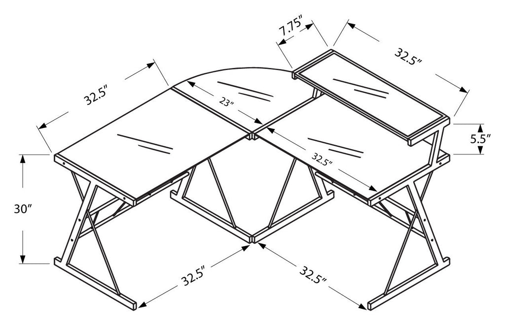 L&S Basics 10868 Computer Desk - Black Metal Corner With Tempered Glass
