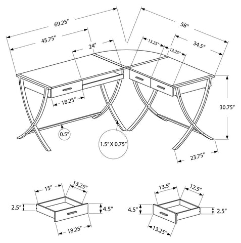 L&S Basics 10869 Computer Desk - 3Pcs Set / Cappuccino / Silver Corner