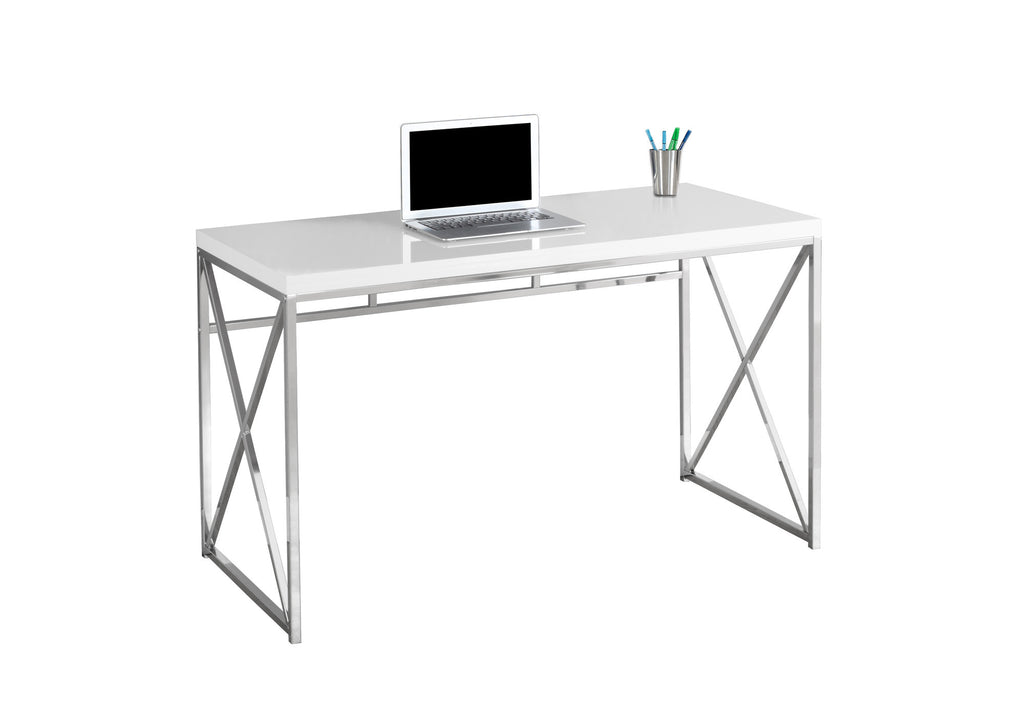 L&S Basics 10877 Computer Desk - 48"L / Glossy White / Chrome Metal