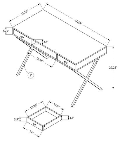 L&S Basics 10881 Computer Desk - 48"L / Glossy White / Chrome Metal