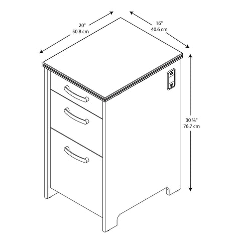 - Full-extension file drawer stores letter or legal-sized paperwork