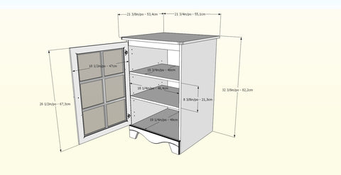 - Reversible door with decorative trim and metal handles - door can open from the left or the right