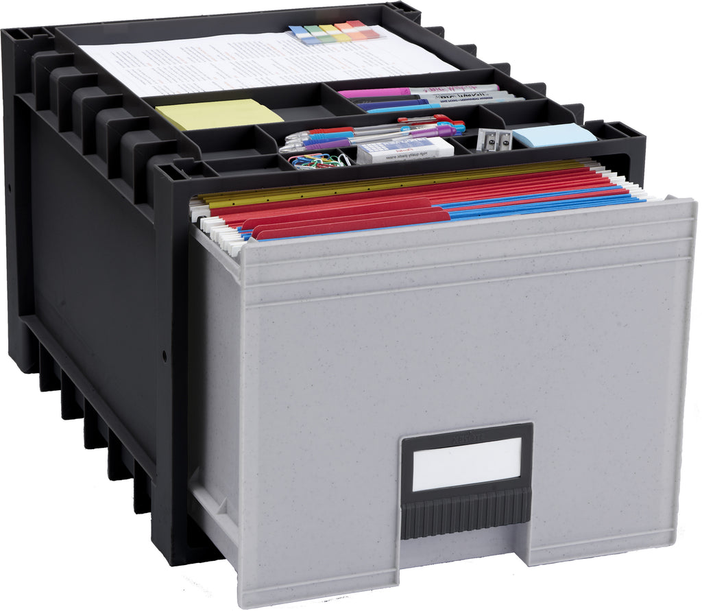 Plastic Archive Storage Box, Letter/Legal, 18-Inch Depth, Black/Gray (Case of 2)