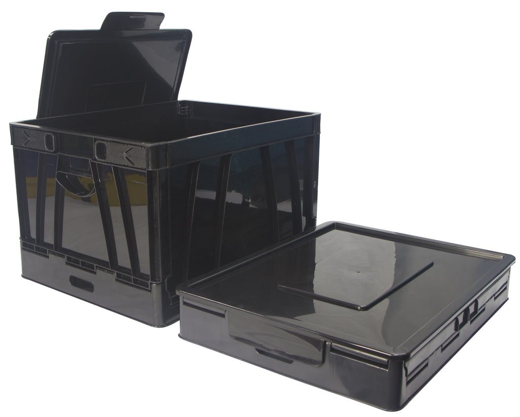 Collapsible Crate with Lid, Black (Case of 2)