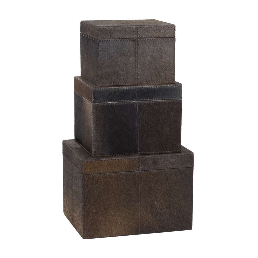 Nested Chestnut Faux Pony Boxes- Set Of 3