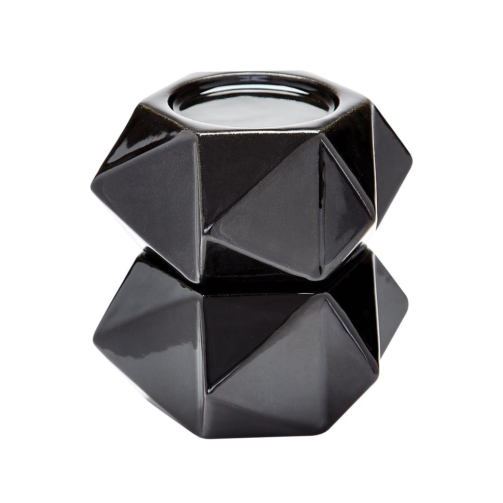 Large Ceramic Star Candle Holders - Black. Set Of 2