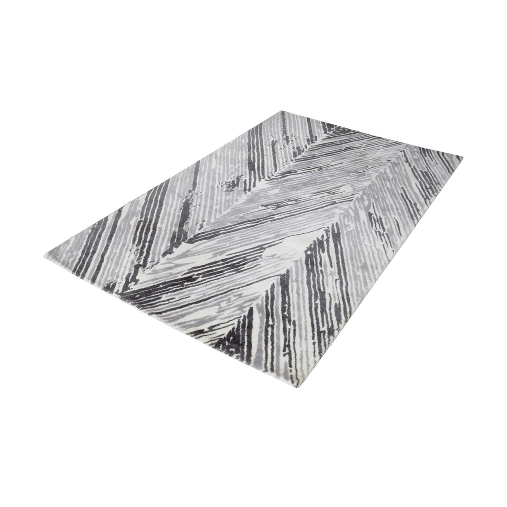 Rhythm Handwoven Printed Wool Rug In Grey And White - 3ft x 5ft