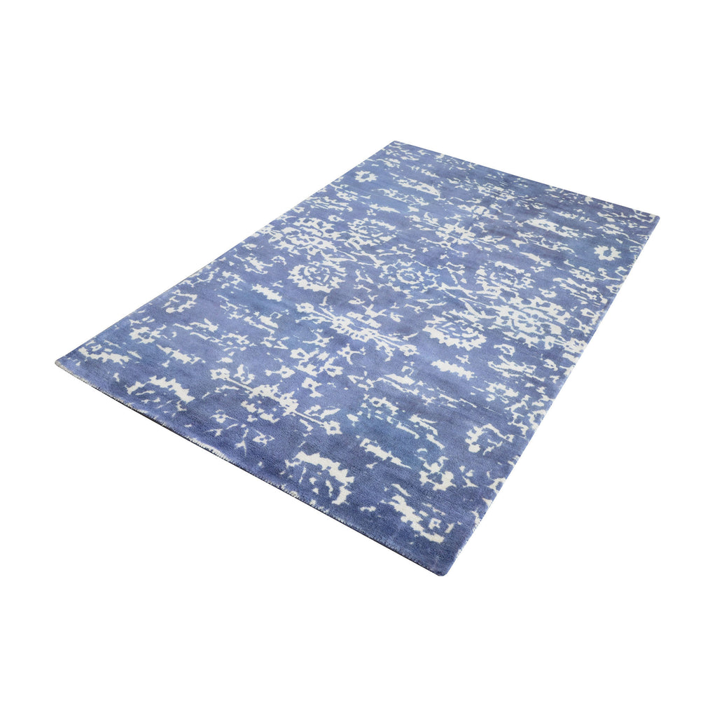 Senneh Handwoven Wool Printed Rug In Blue And White - 5ft x 8ft
