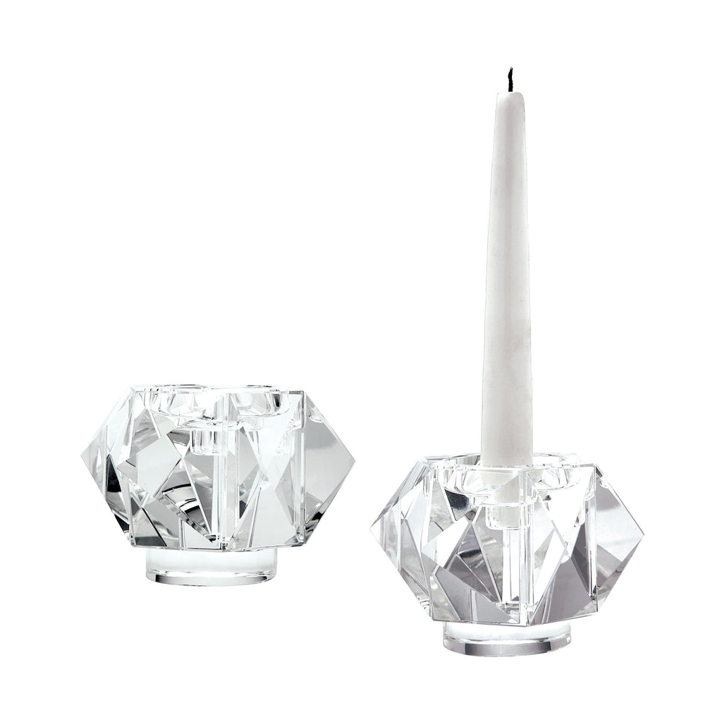 Faceted Star Crystal Candleholders - Small. Set Of 2