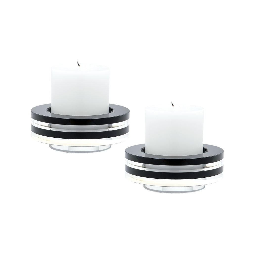 Round Tuxedo Crystal Candleholder - Set Of2