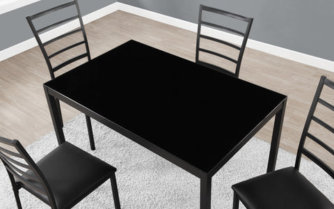 L&S Basics 10014 Dining Set - 5Pcs Set / Black Metal /Black Tempered Glass