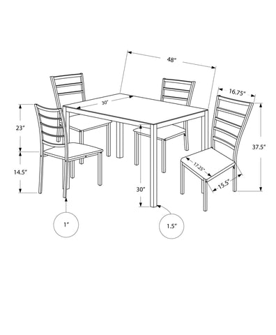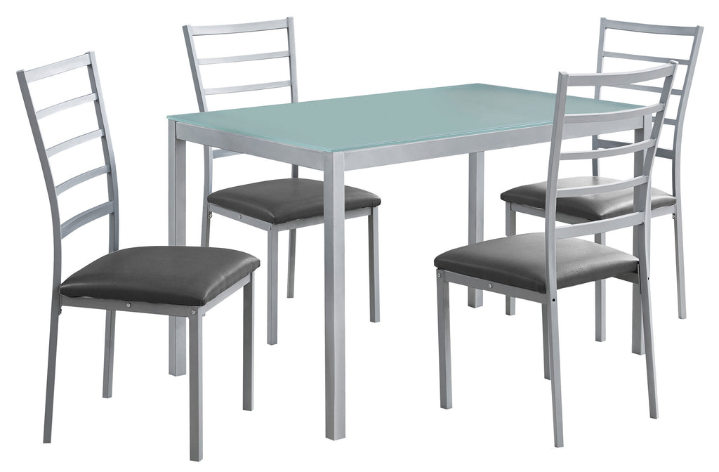 L&S Basics 10015 Dining Set - 5Pcs Set / Silver / Frosted Tempered Glass