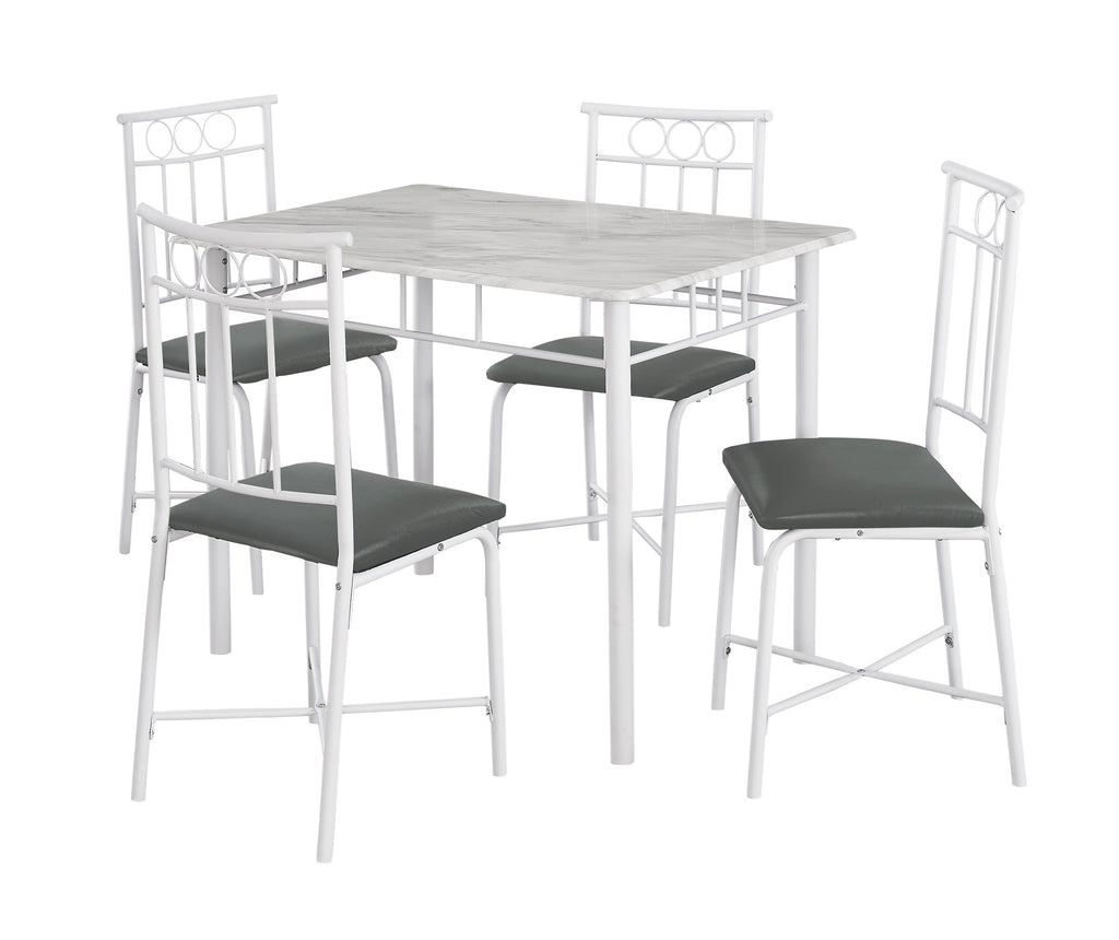 L&S Basics 10017 Dining Set - 5Pcs Set / White Marble / White Metal