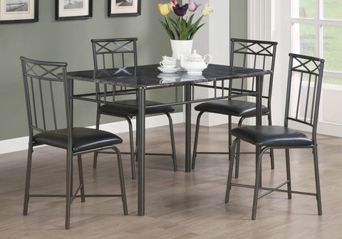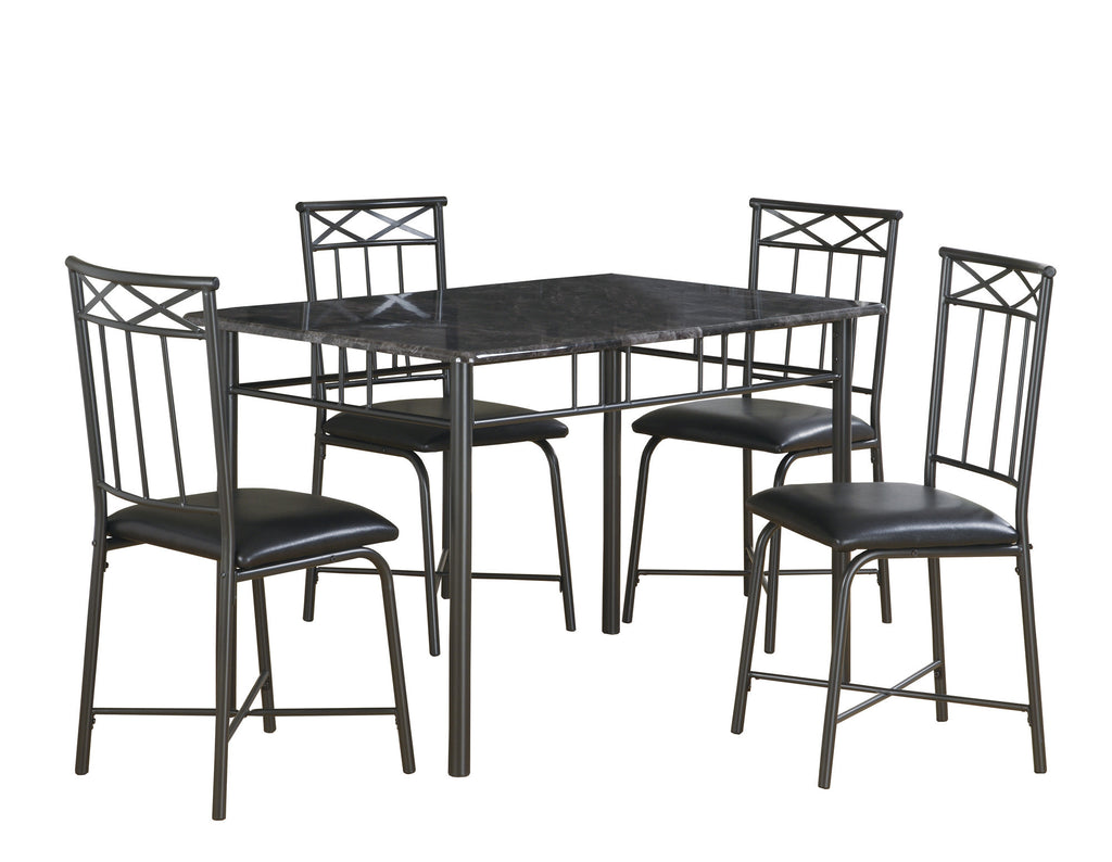 L&S Basics 10018 Dining Set - 5Pcs Set / Grey Marble / Charcoal Metal
