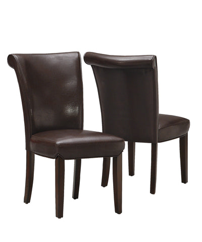 L&S Basics 10107 Dining Chair - 2Pcs / 39"H / Dark Brown Leather-Look