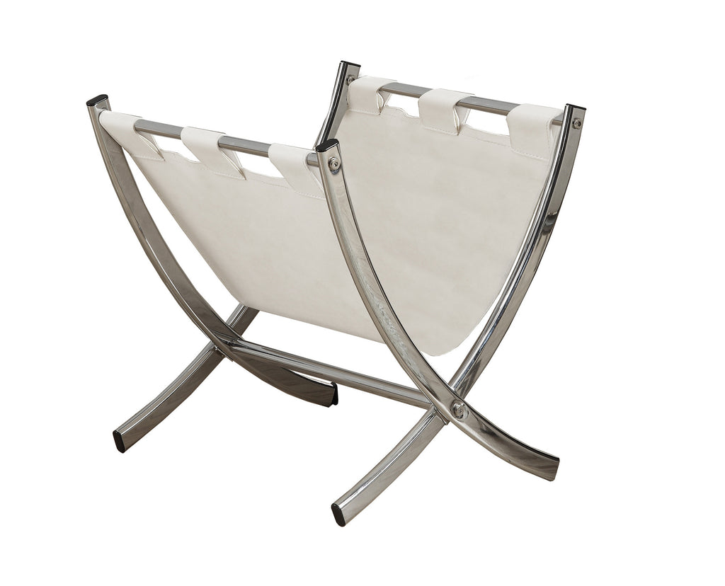 L&S Basics 10188 Magazine Rack - White Leather-Look / Chrome Metal