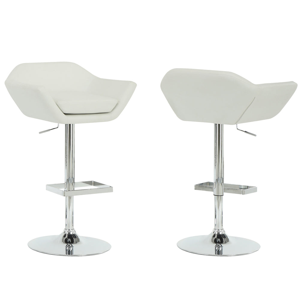 L&S Basics 10234 Barstool - 2Pcs / White / Chrome Metal Hydraulic Lift