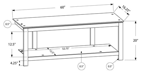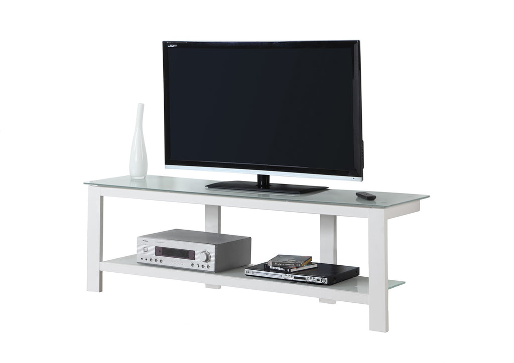 L&S Basics 10347 Tv Stand - 60"L / White Metal With Frosted Tempered Glass