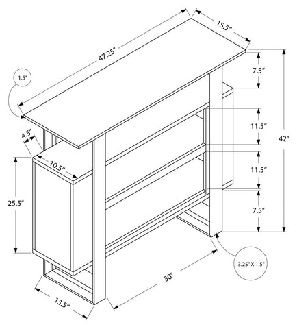 L&S Basics 10372 Home Bar - 48"L / Cappuccino With Bottle / Glass Storage