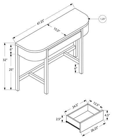 L&S Basics 10379 Accent Table - 48"L / Dark Taupe With A Storage Drawer