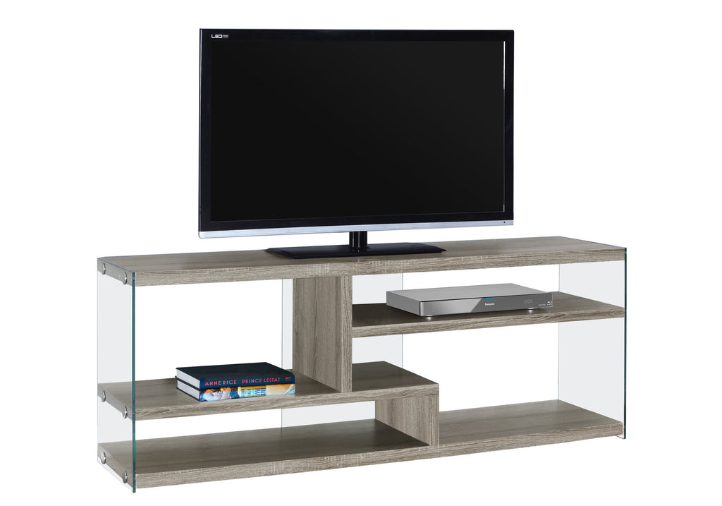 L&S Basics 10433 Tv Stand - 60"L / Dark Taupe With Tempered Glass