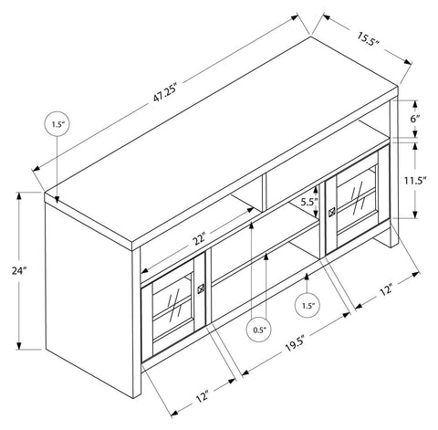 L&S Basics 10442 Tv Stand - 48"L / Dark Taupe With Glass Doors
