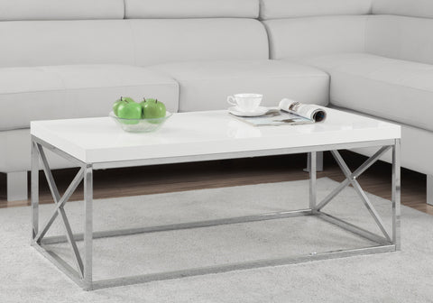L&S Basics 10470 Coffee Table - Glossy White With Chrome Metal