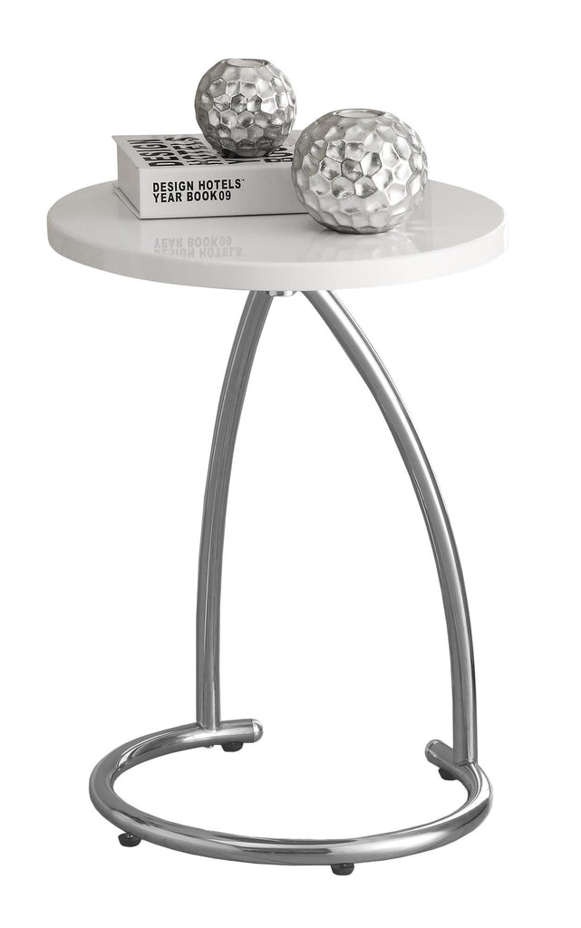L&S Basics 10476 Accent Table - Glossy White With Chrome Metal
