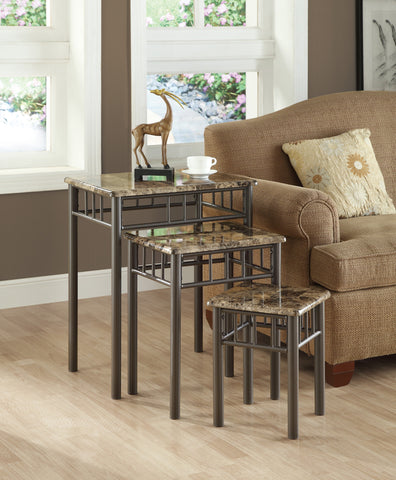 L&S Basics 10481 Nesting Table - 3Pcs Set / Cappuccino Marble / Metal
