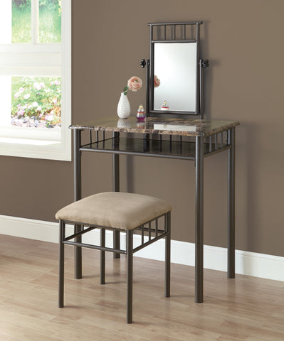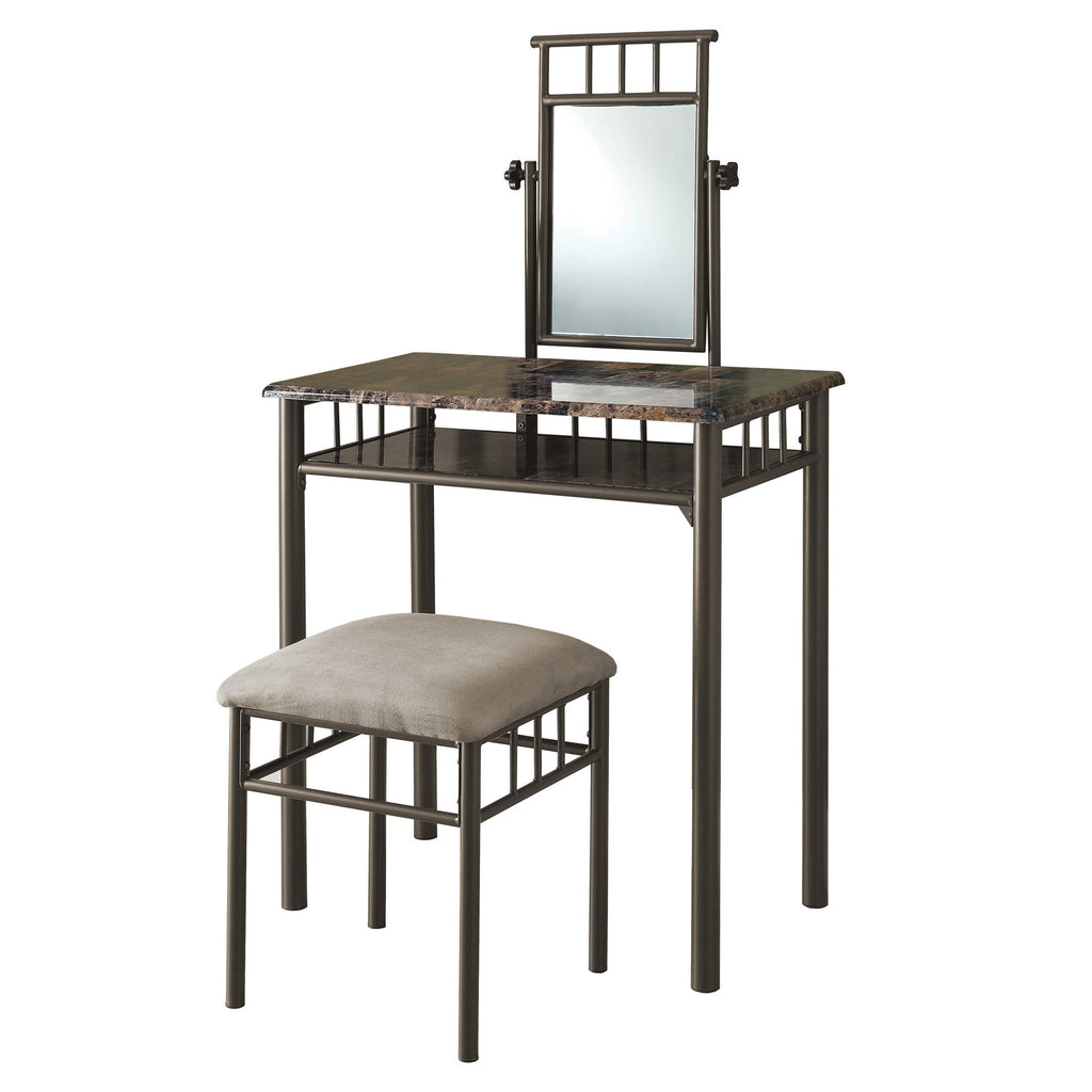 L&S Basics 10482 Vanity Set - 2Pcs Set / Cappuccino Marble / Bronze Metal