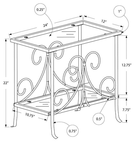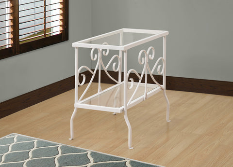 L&S Basics 10531 Accent Table - White Metal With Tempered Glass