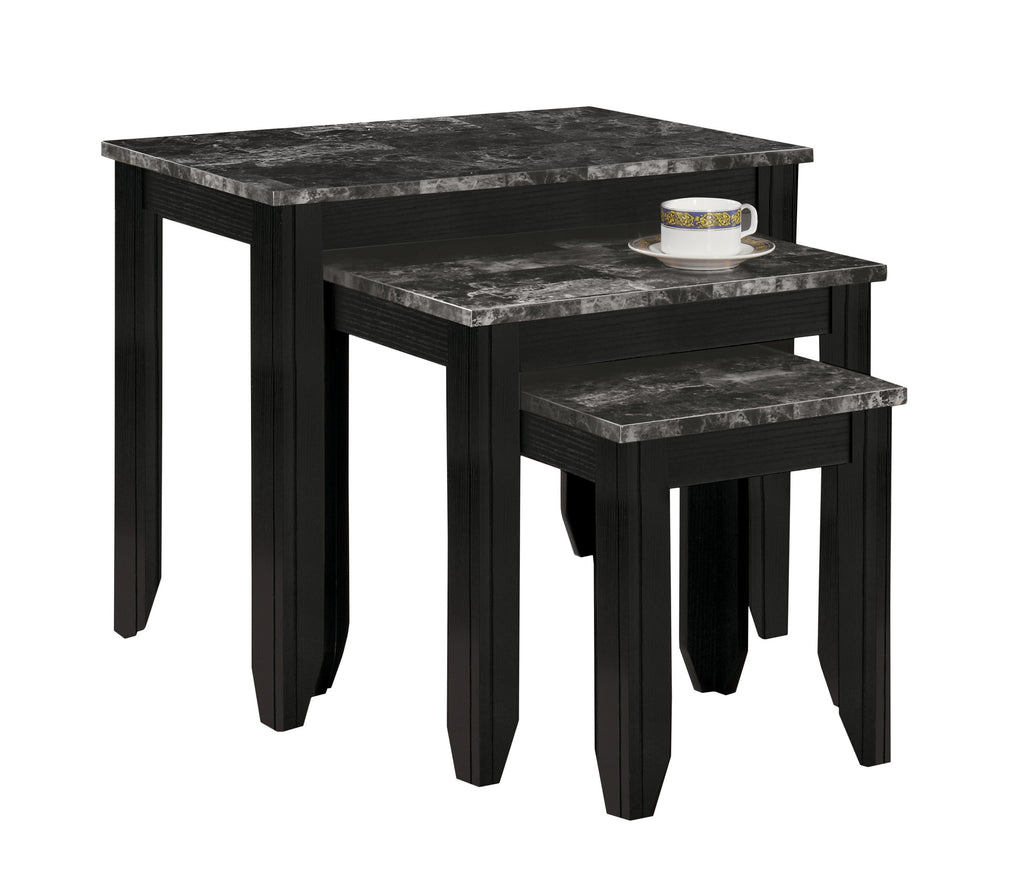 L&S Basics 10549 Nesting Table - 3Pcs Set / Black / Grey Marble Top
