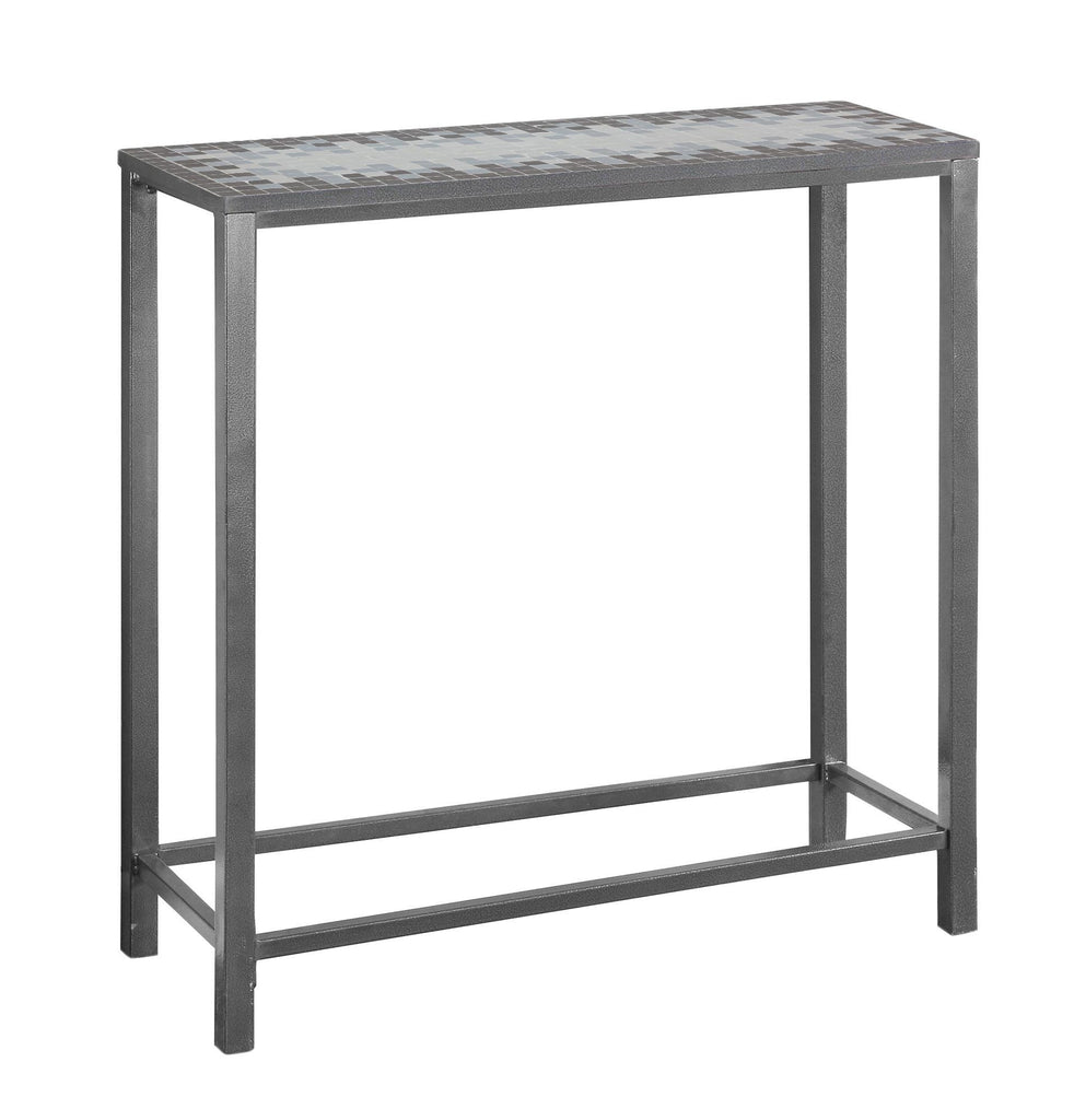 L&S Basics 10560 Console Table - Grey / Blue Tile Top / Hammered Silver