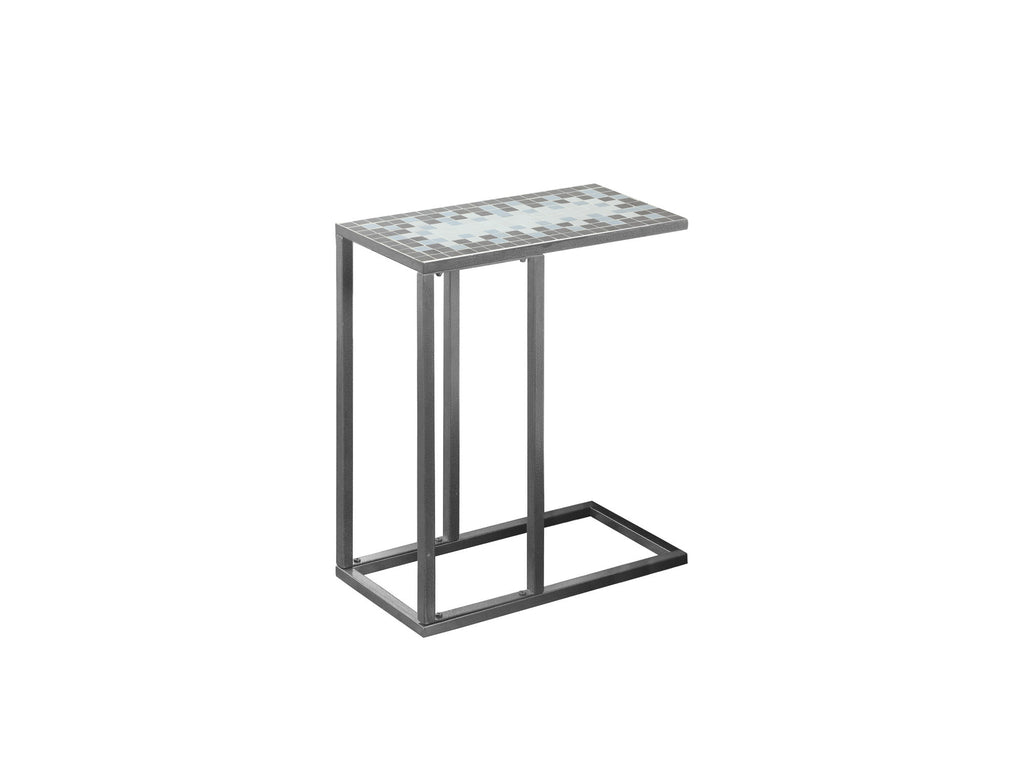 L&S Basics 10562 Accent Table - Grey / Blue Tile Top / Hammered Silver