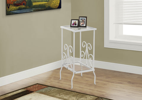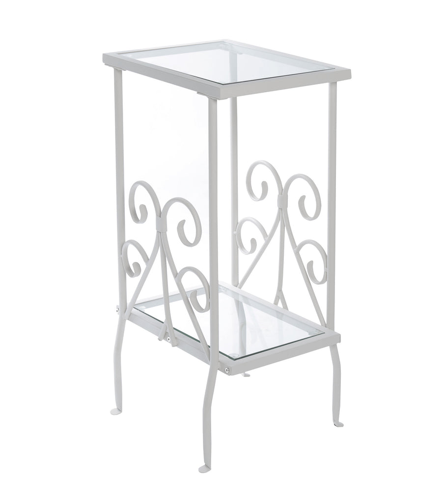L&S Basics 10566 Accent Table - 30"H / White Metal With Tempered Glass