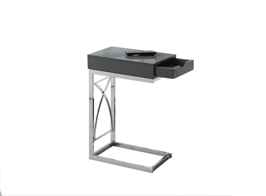 L&S Basics 10576 Accent Table - Chrome Metal / Glossy Grey With A Drawer