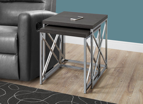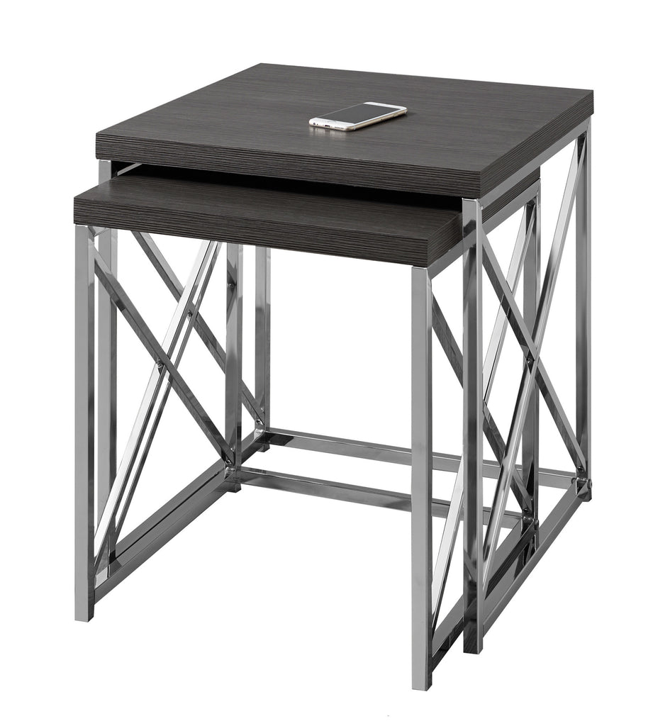 L&S Basics 10605 Nesting Table - 2Pcs Set / Grey With Chrome Metal