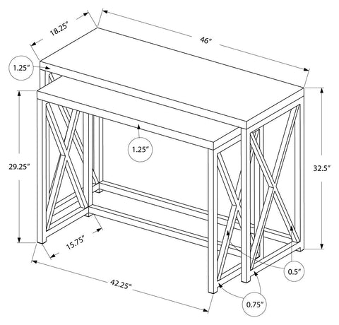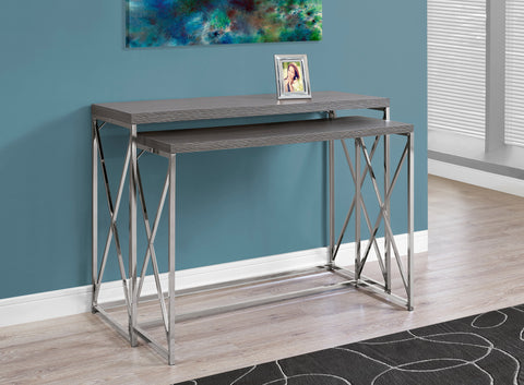 L&S Basics 10606 Console Table - 2Pcs / Grey With Chrome Metal