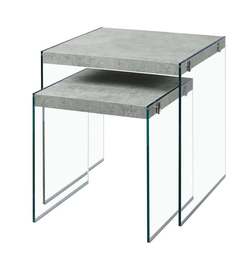 L&S Basics 10610 Nesting Table - 2Pcs Set / Grey Cement / Tempered Glass