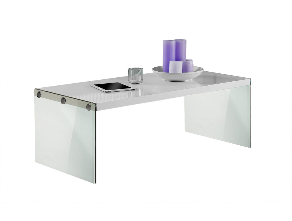 L&S Basics 10638 Coffee Table - Glossy White With Tempered Glass