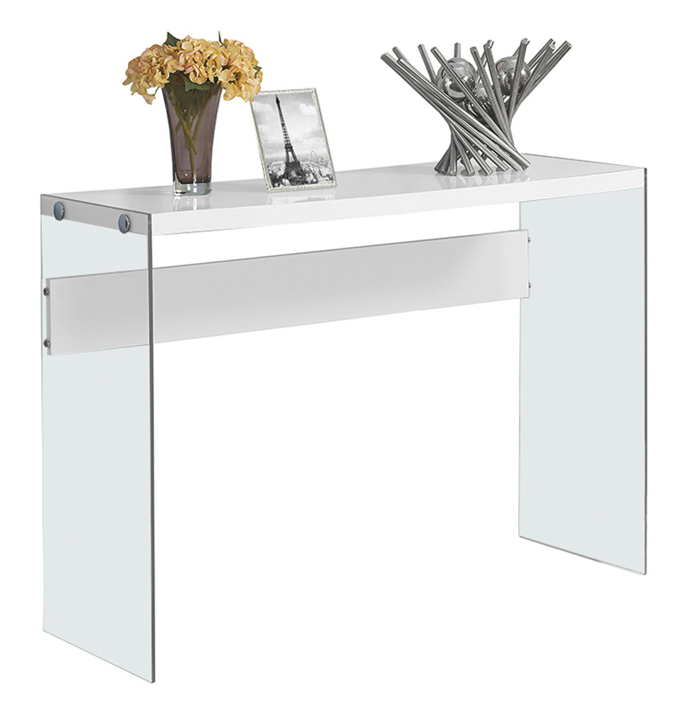 L&S Basics 10640 Console Table - Glossy White With Tempered Glass