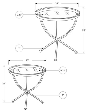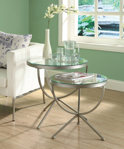 L&S Basics 10654 Nesting Table - 2Pcs Set / Silver With Tempered Glass