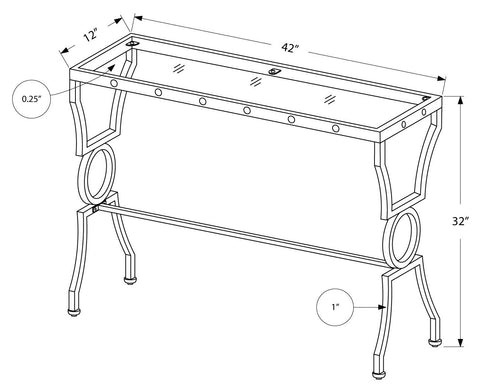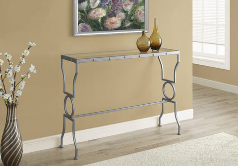L&S Basics 10656 Console Table - Silver Metal With Tempered Glass